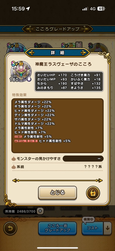 【ドラクエウォーク】ラスヴェーザをワンパンで150万削ってくれた人のココロ見たらこれだったんだけどさ