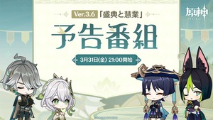 【原神】3月31日(金)21:00より、原神公式YouTubeチャンネルにてVer.3.6「盛典と慧業」予告番組を放送