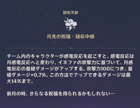 【原神】イネファの天賦のこれフレーバーテキストなのか新月であろう少女と組めばさらに強くなるのかどっちなんだい