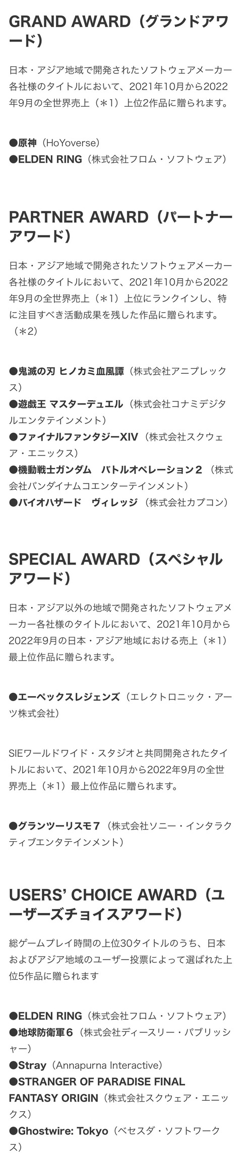 【原神】プレイステーションアワード2022で「原神」「エルデンリング」が大賞を受賞!!!