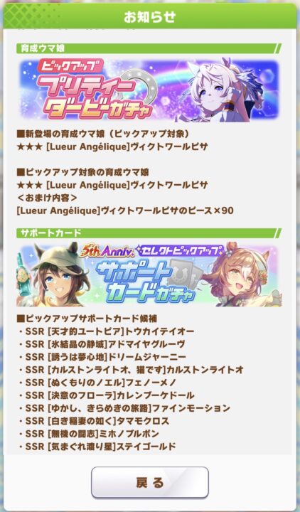 【ウマ娘】3/19(木)のガチャ更新は☆3育成ウマ娘「ヴィクトワールピサ」キタ━━━━(゚∀゚)━━━━!! SSRサポカはセレクトピックアップ!!