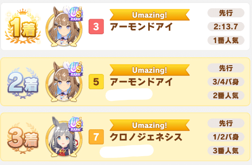 【ウマ娘】今日からデルマー芝2200mチャンミ開幕!アモアイ、ピサなど新キャラが大活躍な模様