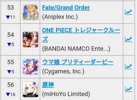 【悲報】原神、セルラン56位wwwwwww