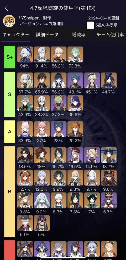 【原神】4.7螺旋のキャラ使用率が判明!召使の過大評価バレてきたな