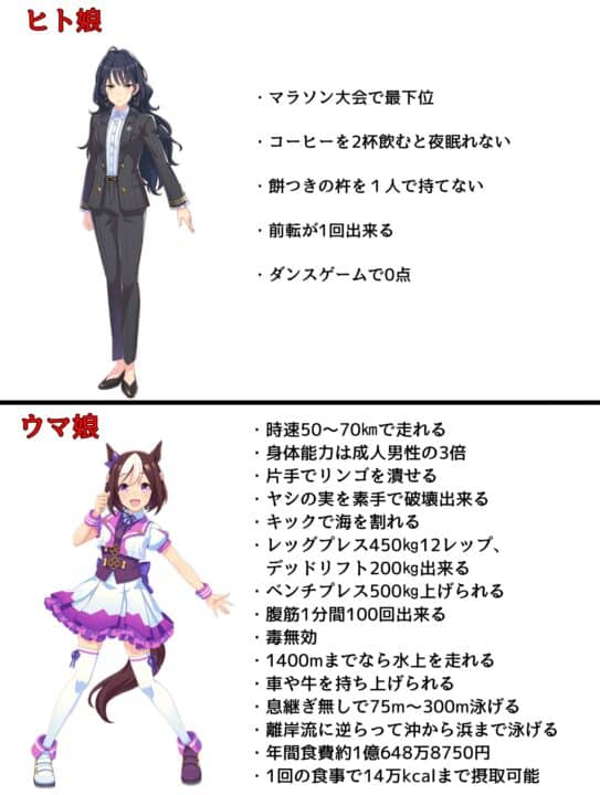 【ウマ娘】人間がウマ娘に勝てない理由。←「比較対象も酷すぎるwww」